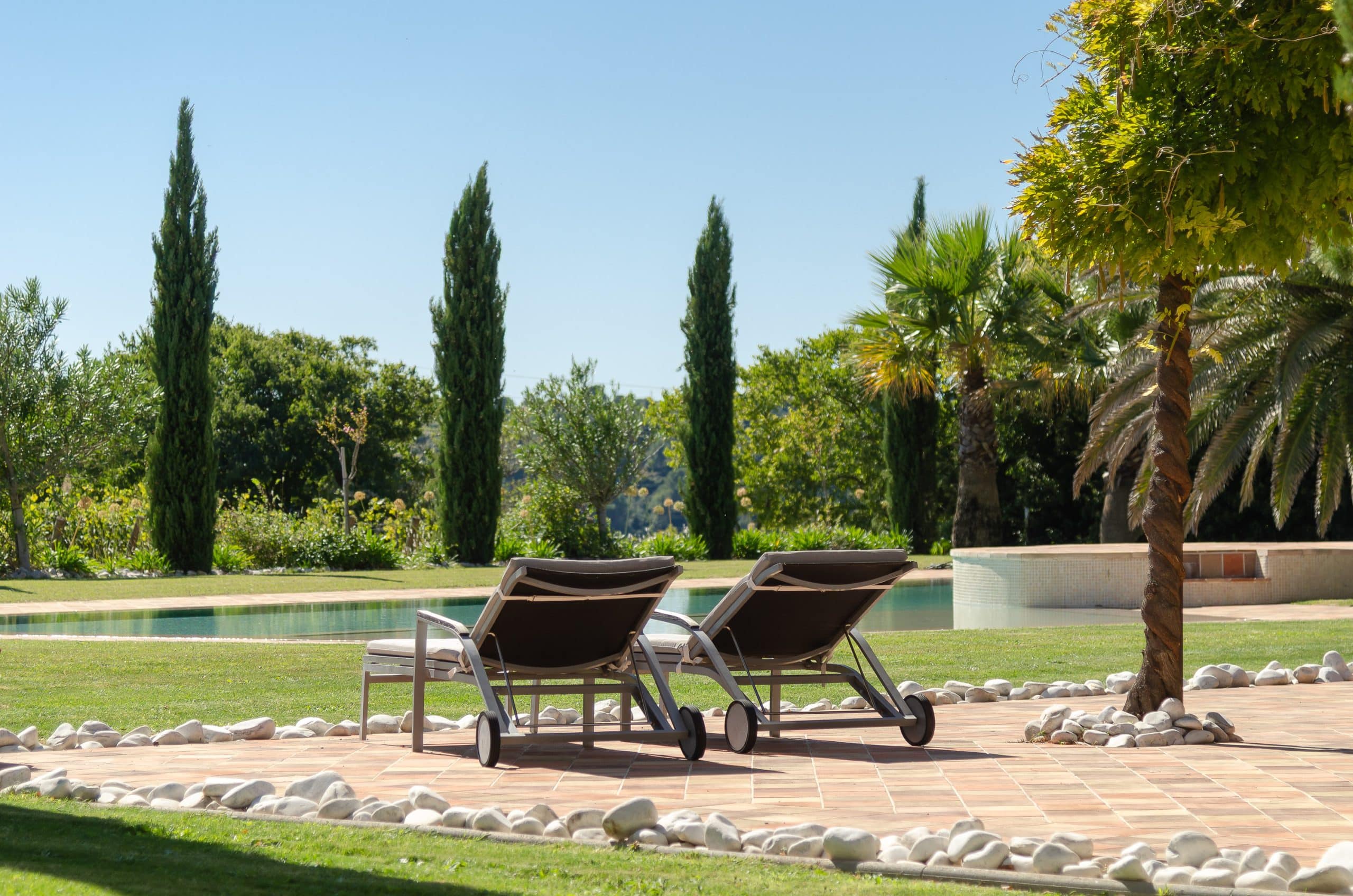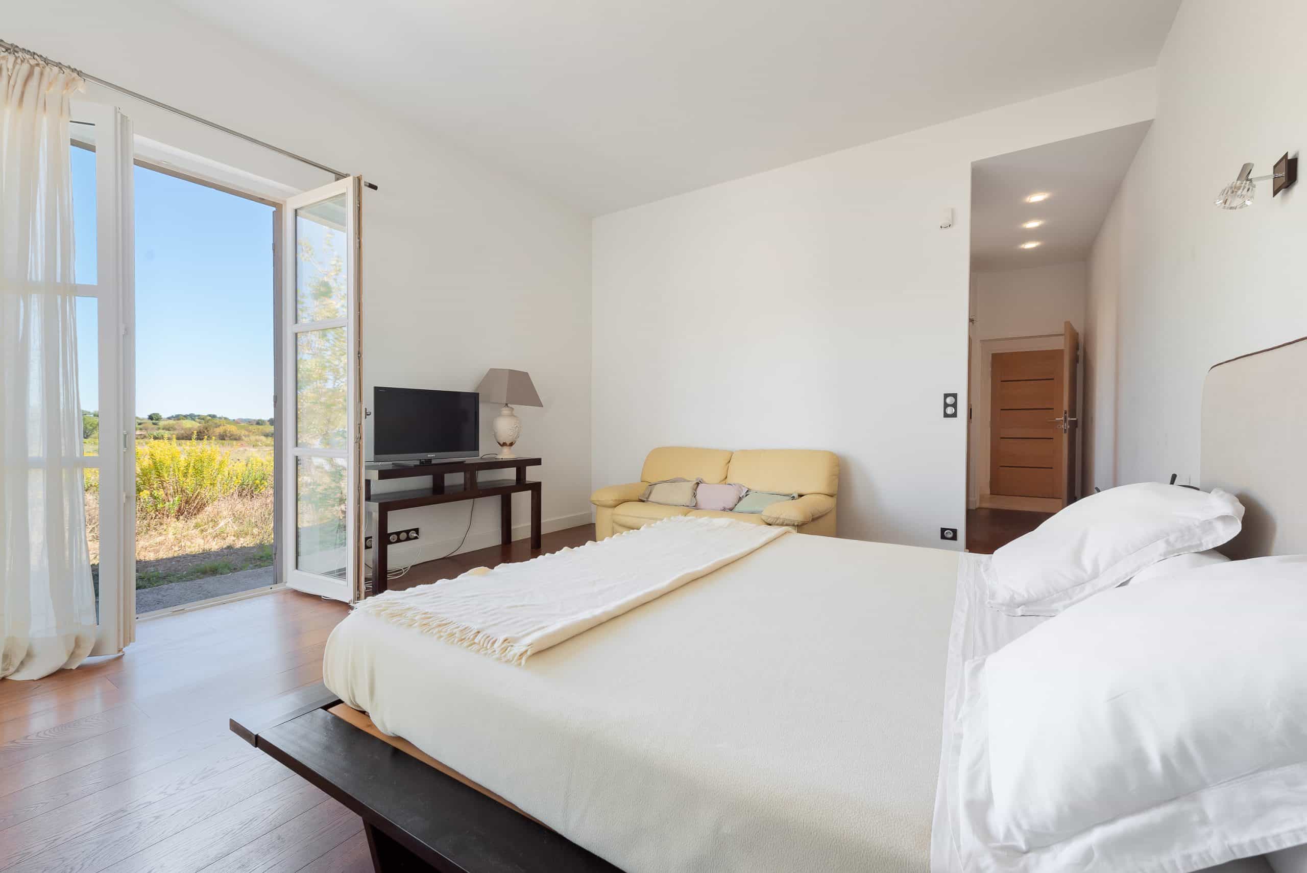 Le domaine propose 7 chambres spacieuses, dont 2 suites parentales, chacune dotée de sa terrasse privative offrant une vue apaisante sur le jardin ou la piscine.