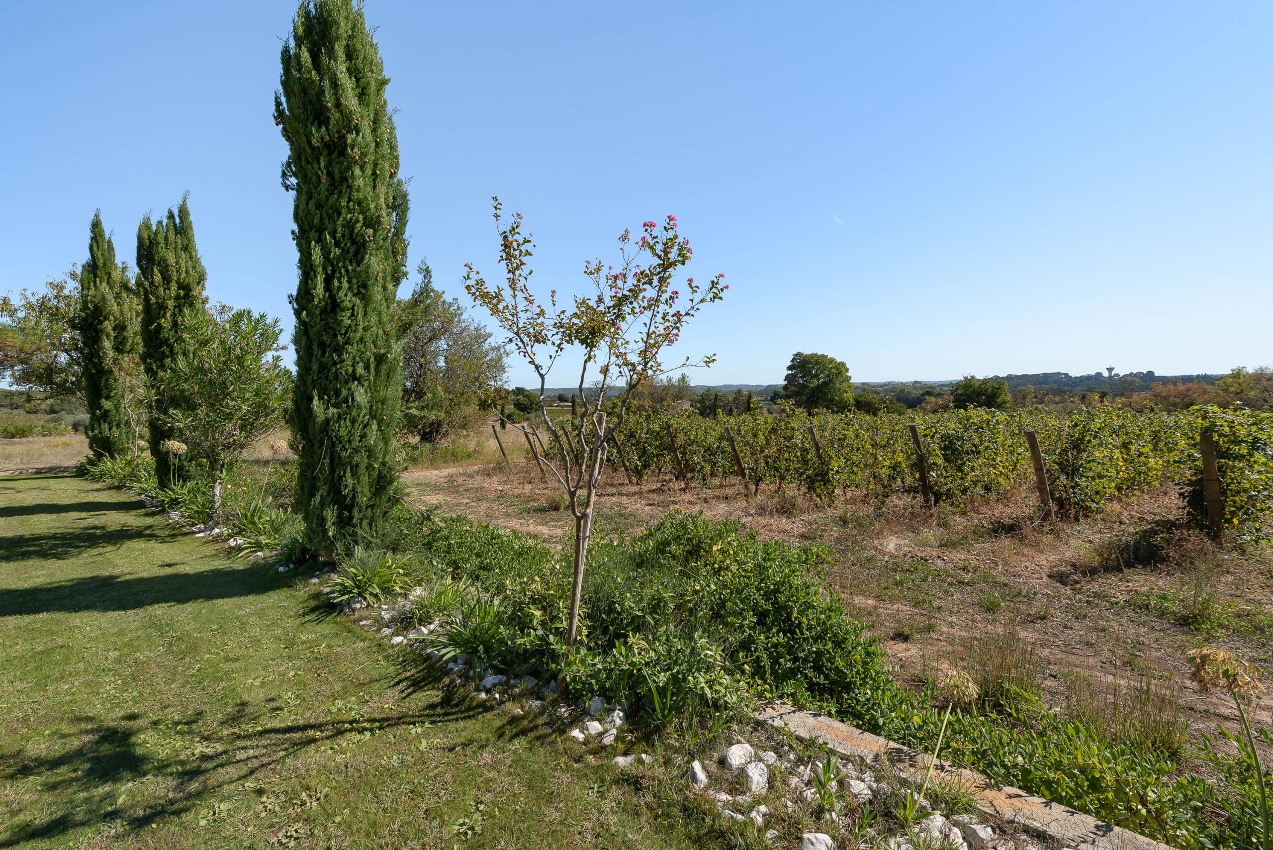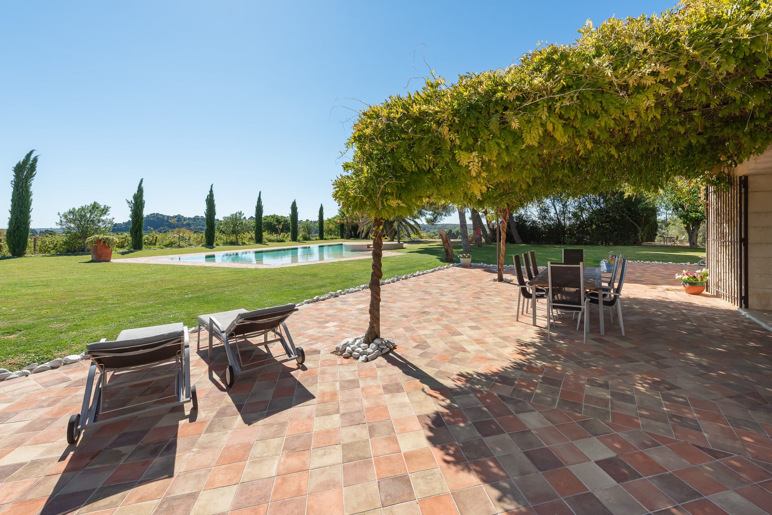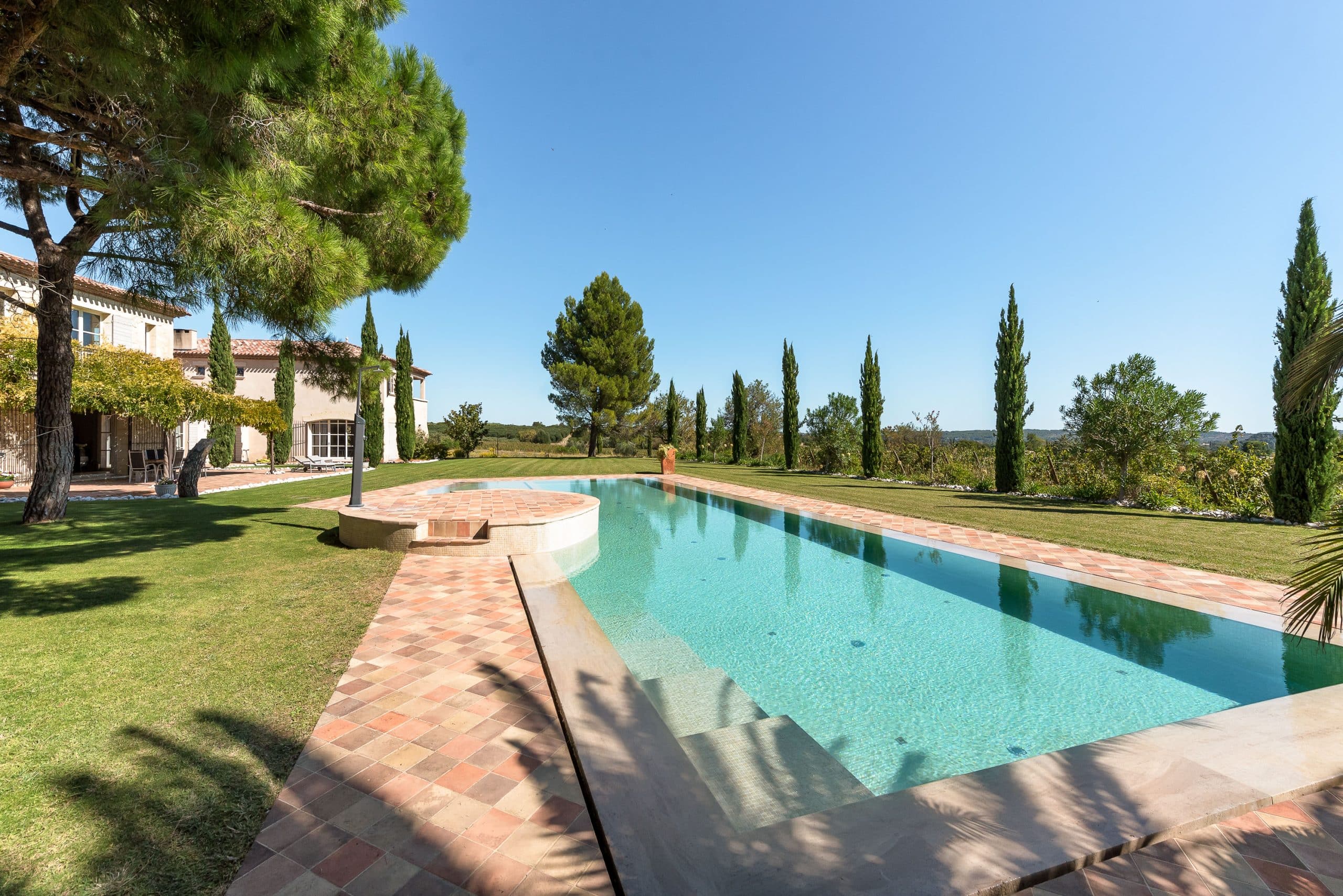 À l’extérieur, profitez d’une grande piscine longue de 20 mètres, parfaite pour se détendre sous le soleil ou pratiquer quelques longueurs. Le vaste jardin, entouré de vignes, invite au repos, à la contemplation et au partage de moments conviviaux.